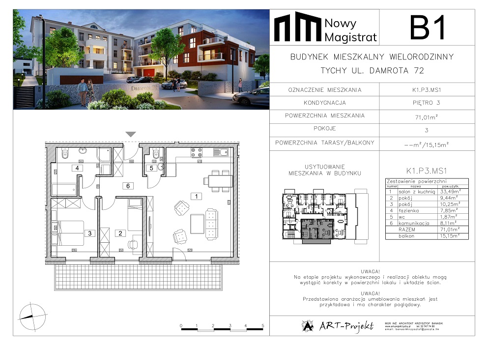 Budynek B1 cechuje się nowoczesnym wykończeniem. Między innymi elewacja z elementami dekoracyjnymi w kolorze naturalnej rdzy. Miejscowe podświetlenie elewacji, oświetleniem LED.