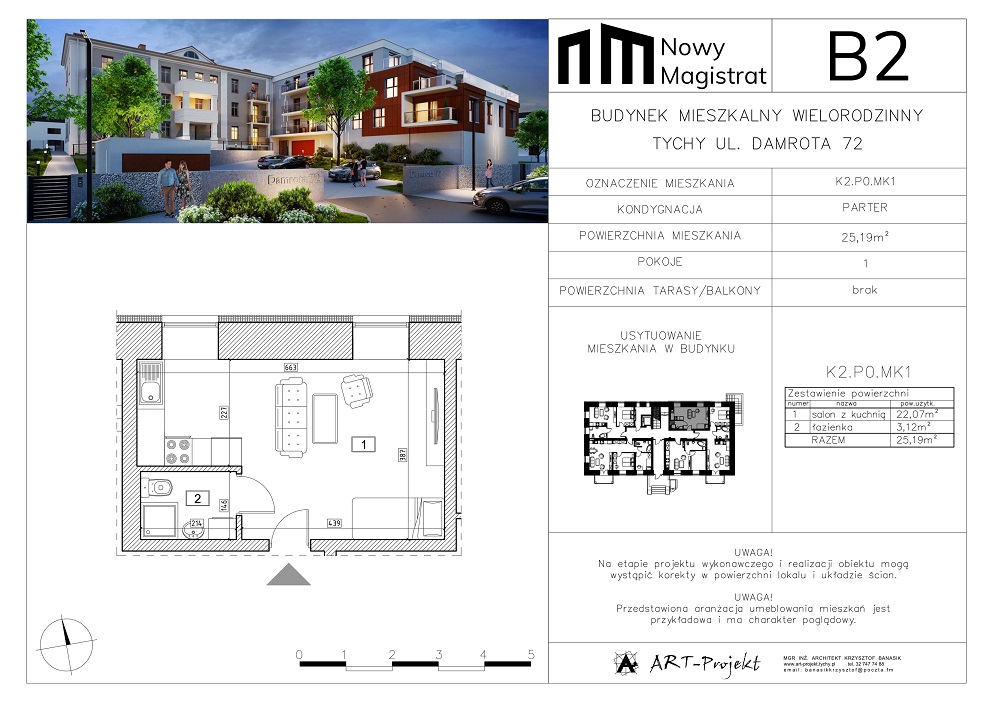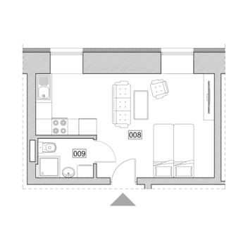Mieszkanie zlokalizowane na parterze budynku historycznego z ekspozycją okien na północ. Mieszkanie składa się z salonu z aneksem kuchennym i łazienki.